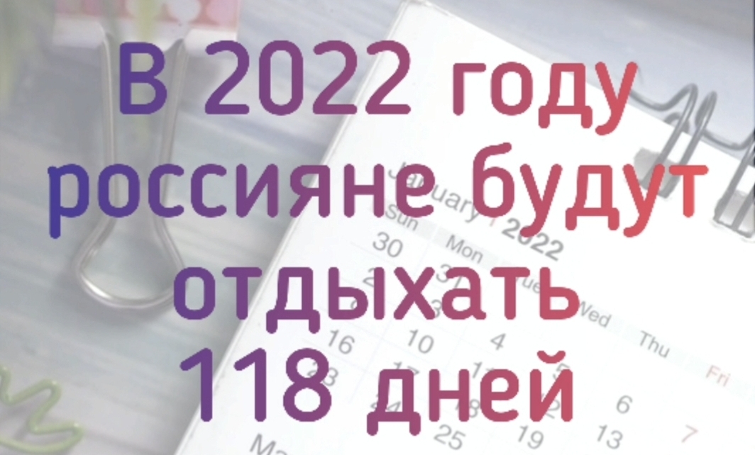 Всего в 2022 году жители России не будут работать, если учесть праздники и выходные, 118 дней - то есть почти 4 месяца.